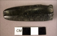 Obsidian prismatic core. Chipped stone. Measures 6.4 cm x 2.2 cm x 1.2 cm.