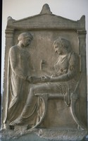 High classical grave stele portraying a domestic scene where Hegeso sits and is attended to by a servant.