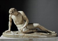 A Celtic trumpeter bleeds out. This work is a Roman marble copy of a Greek Hellenistic original.