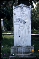 This is a monument to commemorate the support of the American people during World War II (1939). This frieze depicts a woman in composite perspective with a helmet holding a staff (her left arm is raised). There is an eagle above her. There are also 2 Greek inscriptions carved on the left side of the woman. The upper inscription reads: "The sons of Perikles of the Achepa Organization." The lower inscription reads: "In memory of the American heroes who fought for Greek freedom in 1939." This is in the Garden of Heroes in Missolonghi, which contains many monuments made commemorating the Greek War of Independence. This monument honors Americans (symbolized by the American national bird and a woman personifying liberty).